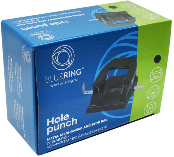 - erõs, fém lyukasztó blokkolható lyukasztó karral a helytakarékos tárolás érdekében - irodai használatra ajánlott - az erõs, fém konstrukció tökéletes lyukasztást eredményez - nagyméretű, könnyen üríthetõ tartály - blokkolható szerkezettel és távtartóval - kapacitás: 25 lap (80 g-os) - lyukátmérõ: 5,5 mm - lyuktávolság: 8 cm fix - 4-lyukú szabványnak megfelel