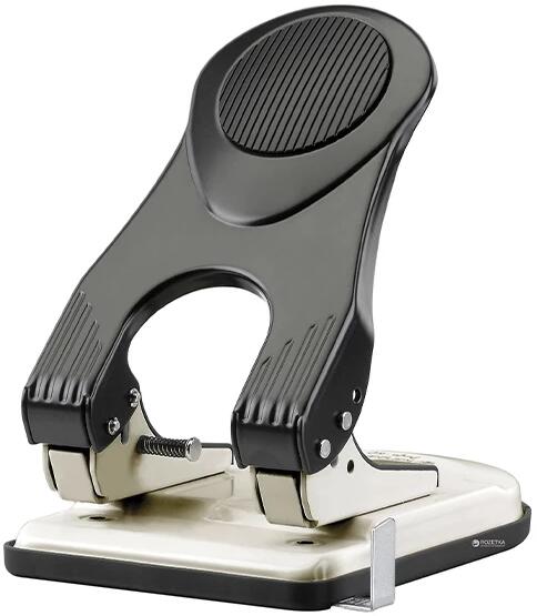 Strapabíró, nagy méretű lyukasztó elegáns kétszínű kivitelben, egyedi külsővel, modern megjelenéssel. A lekerekített, bordázott, gumi felületű nyomókar kényelmesebbé teszi a használatot. Műanyag távtartóval és praktikus nyílással a konfetti kiürítésére. Lezárható karjának köszönhetően kisebb helyen, akár fiókban is elfér. Kiváló segédeszköz irodában, isk