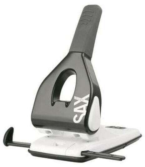 Lyukasztó, nagyteljesítményű, kétlyukú, 65 lap, SAX Design 618, fekete (ISA618FK) - könnyűfém test - karos lyukasztó - műanyag távtartó - gumírozott nyomófelület - a lyukasztóbélyeg mechanikájának köszönhetően 50% -kal kevesebb erőkifejtés szükséges a lapok átlyukasztásához - lyuktávolság: 80 mm - lyukátmérő: 5,5 mm - lyukasztási kapacitás: 65 lap - életre sz