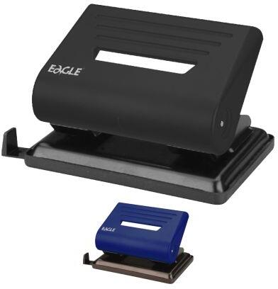 Irodai, asztali, színes fémvázas lyukasztó, távtartóval, papírhulladék tartóval ellátva, 15 lap lyukasztási kapacitással.