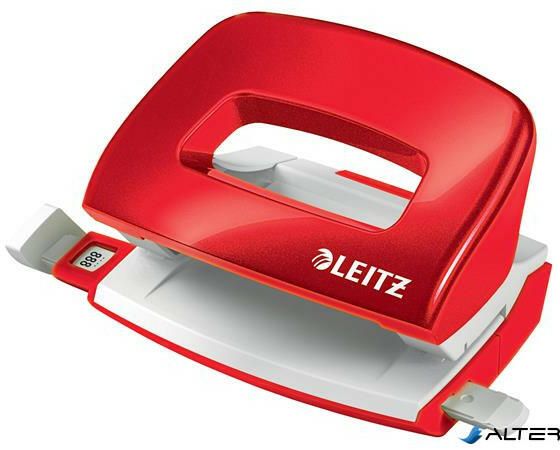 Irodai, asztali, színes fémvázas lyukasztó, távtartóval, papírhulladék tartóval ellátva. Lyukasztási kapacitással: 30 lap. Lyuktávolság: 80 mm. Lyukátmérő: 5,5 mm.