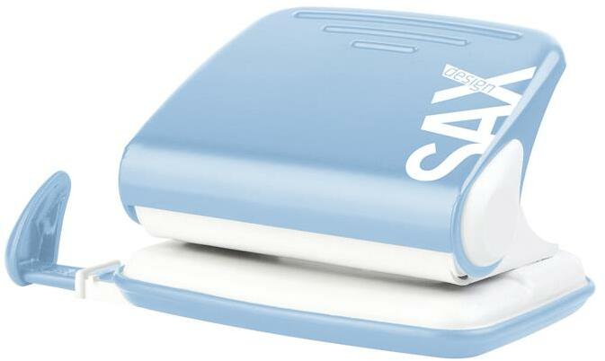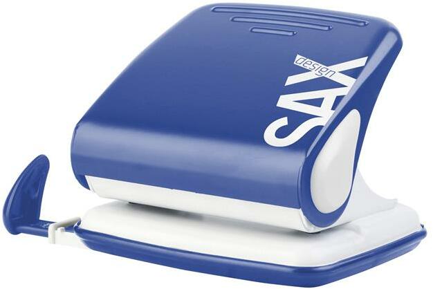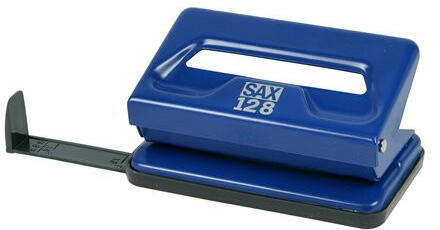 Lyukasztó, kétlyukú, 12 lap, SAX "128s", kék - könnyűfém testű, fémszerkezetű lyukasztógép - távtartó - lyukasztási kapacitás:12 lap - lyukátmérő: 5,5 mm - 5 év garancia