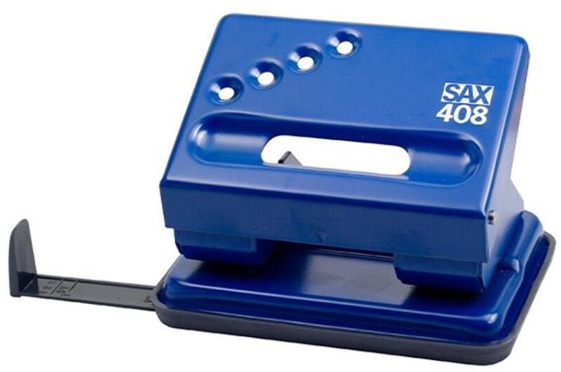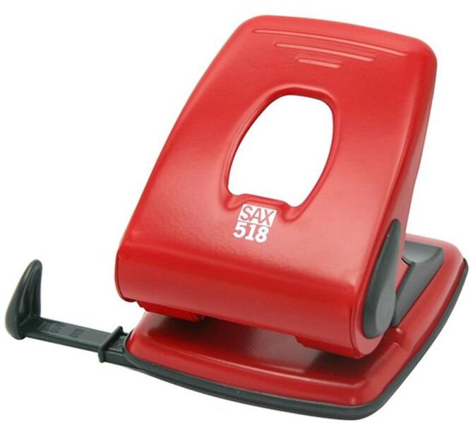 Irodai, asztali, színes fémvázas lyukasztó, távtartóval, papírhulladék tartóval ellátva. Lyukasztási kapacitással: 30 lap. Lyuktávolság: 80 mm. Lyukátmérő: 5,5 mm.