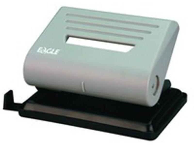 Irodai, asztali lyukasztó, távtartóval, papírhulladék tartóval rendelkezik. Műanyag test, fém szerkezet, lyukasztási kapacitás: 25 lap, lyukátmérő: 5,5 mm, lyuktávolság: 80 mm. 3 év garancia.
