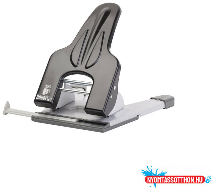 Lyukasztó 45lap, Boxer P3 fekete Formatervezett lyukasztógép, szabadsínes műanyag távtartó. Egyszerre lyukasztható lapok száma: max. 30 lap. Lyuktávolság: 80 mm. Lyukátmérő: 5,5 mm.