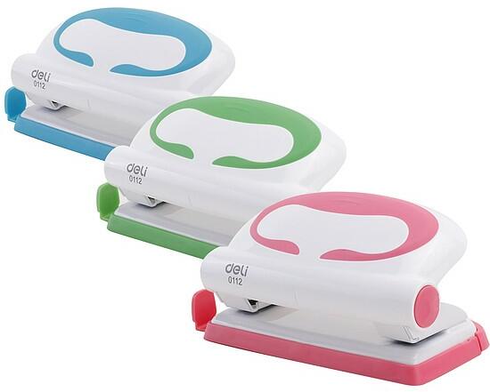 Lyukasztó, kétlyukú, 10 lap, műanyag, DELI Vivid, vegyes színben