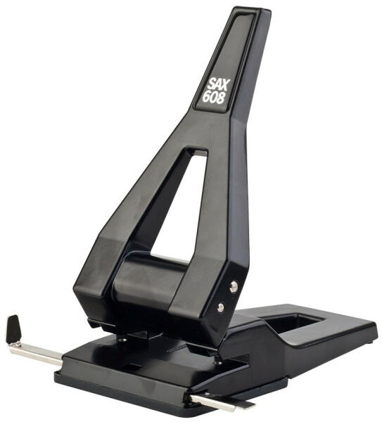 LYUKASZTÓ KÉTLYUKÚ 65LAP FEKETE SAX 608 Nagyteljesítményű, könnyűfém testű, karos lyukasztógép, fém ütköztetőléccel. A lyukasztóbélyeg mechanikájának köszönhetően 25% -kal kevesebb erőkifejtés szükséges a lapok átlyukasztásához. Egyszerre lyukasztható lapok száma: max. 63 lap. Lyuktávolság: 80 mm. Lyukátmérő: 5,5 mm. Katalóguskód: 13610