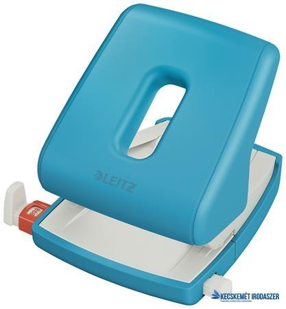 fém test, türkiz matt bevonat letisztult dizájn és célszerűség kombinációja távtartó bemélyedés a konfettitartó tálcán a gyűrűskönyvek és emelőkaros iratrendezők fémszerkezetének odaillesztéséhez, a dokumentumok pontos helyen történő lyukasztásához lyukátmérő: 5,5 mm 5 év garancia