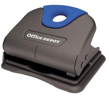 Office Depot 20 fekete/kék lyukasztó - Fémtestű lyukasztó műanyag kiegészítőkkel - Ergonomikus kiképzés a könnyed lyukasztás érdekében, 6 fokozatban állítható távtartó - Lyukasztható lapok száma: 20 - Szín: fekete/kék