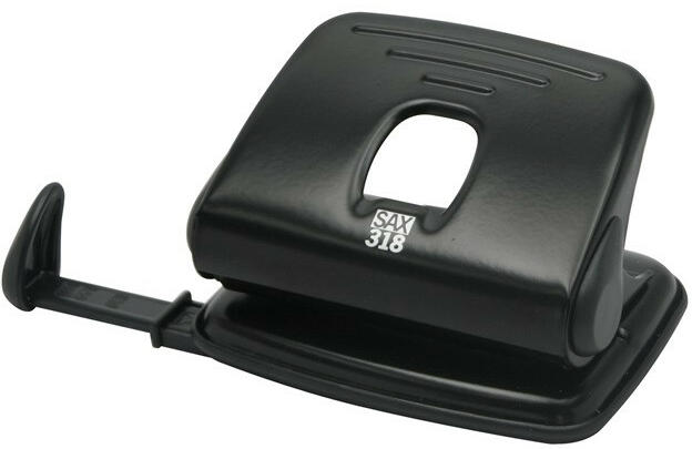 LYUKASZTÓ KÉTLYUKÚ 20LAP FEKETE SAX DESIGN 318 Könnyűfém test, fém szerkezet, ütköztetőléc. Egyszerre lyukasztható lapok száma: max. 20 lap. Lyuktávolság: 80 mm. Lyukátmérő: 5,5 mm. Katalóguskód: 13599
