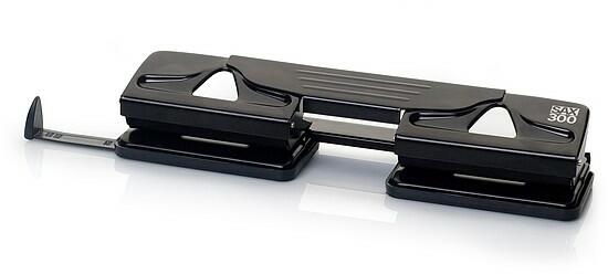 4 lyuk egyidejű lyukasztására alkalmas lyukasztógép. Könnyűfém test, fémszerkezet, ütköztetőléc. Egyszerre lyukasztható lapok száma: max. 20 lap. Lyuktávolság: 80 mm. Lyukátmérő: 5,5 mm.