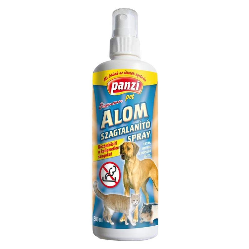 Panzi alom szagtalanító spray - Kutyáknak, macskáknak és rágcsálóknak. A Panzi alom szagtalanító spray használata során megszünteti, illetve jelentősen csökkenti a macskák és rágcsálók tartásánál felmerülő kellemetlen szagokat. Panzi alom szagtalanító spray - Kutyáknak, macskáknak és rágcsálóknak. A Panzi alom szagtalanító spray használata során megszünteti, i