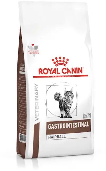 Royal Canin Veterinary Feline Gastrointestinal Hairball Teljes értékű diétás eledel, felnőtt macskáknak szőrlabdák kialakulása ellen. Ízletes száraztáp felnőtt macskáknak hairball komplexummal, ami segíthet a lenyelt szőrszálak kiválasztásában. Könnyen emészthető. Prebiotikumokkal, rostokkal és mérséklet kalóriatartalommal. A Royal Canin Veterinary Feline Gastrointestin