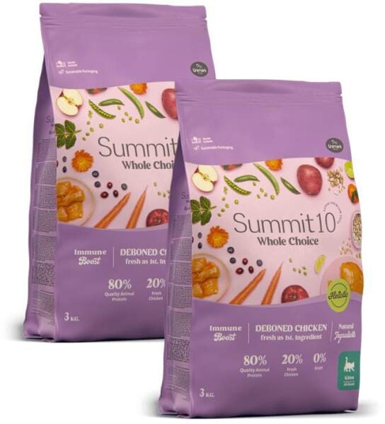 Summit 10 Whole Choice Kitten Teljesértékű, gabonamentes száraz macskatáp friss csirkehússal és hallal, minden fajtájú kölyök macskának A termék főbb jellemzői: fehérjében gazdag, ízletes, friss csirkehússal a normál fejlődésért Omega-3-ban és Omega-6-ban gazdag hallal az egészséges szőrért és bőrért gabonamentes receptúraEz a recept emellett jól emészthető szén