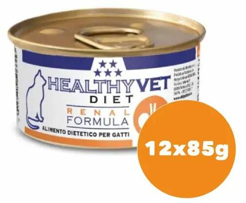 Healthy Vet Diet Cat Renal Formula 85g - Teljes értékű, kiegyensúlyozott diétás állateledel felnőtt macskáknak a veseműködés támogatására krónikus vagy átmeneti veseelégtelenség esetén. ÖSSZETÉTEL: Csirke, sertés, hal, rizs, halolaj, taurin. ANALITIKAI ÖSSZETEVŐK: Nedvesség 78%, nyersfehérje 6,5%, nyersolajok és zsírok 7%, nyershamu 1%, nyersrost 0,5%, kálcium 0,2%, f