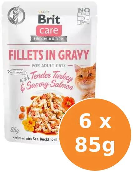 Brit Care Cat Pouch pulykafilé és lazacfilé, homoktövissel és sarkantyúkával dúsítva, felnőtt macskák számára. Teljes értékű szuperprémium gabonamentes állateledel felnőtt macskáknak. Elsősorban a nagyon válogatós macskák számára alkalmas. A homoktövis és a sarkantyúka, segíti a húgyúti bántalmak megelőzését, emellett erős antibakteriális és fertőtlenítő h