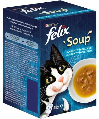 Halas válogatás (tőkehal, tonhal, sima lepényhal) felnőtt cicáknak Akár étvágygerjesztőként étkezés előtt vagy kényeztetésként az étkezések között: a Felix Soup mindig igazi ízélményt nyújt felnőtt cicája számára, ami változatosságot hoz a száraz macskasnackek után. Egy csomag többféle fenséges levest tartalmaz, amelyek finom darabkákkal vannak dúsítva, így