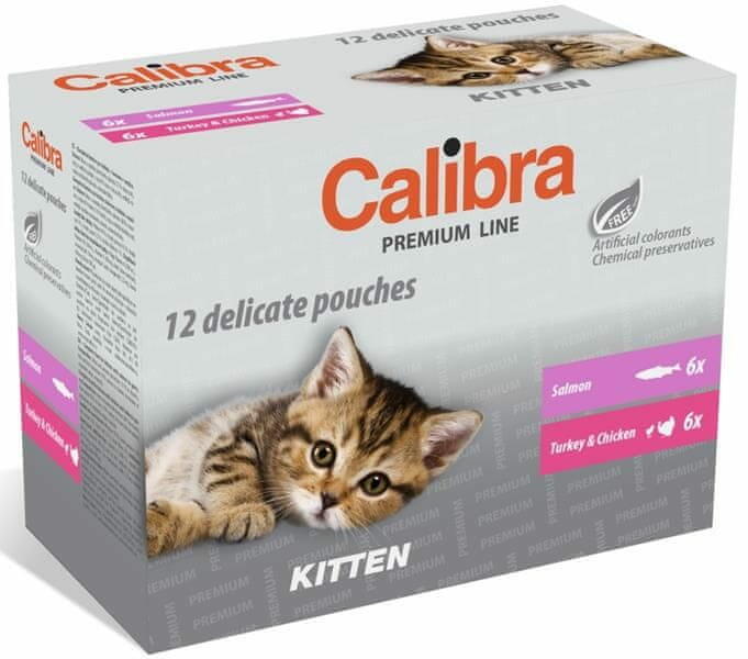 Calibra Cat pocket Premium Kitten multipack 12x100g, A mártásban lévő húsdarabok kielégítik az éhes macskanyelvek igényes ízlését. Mesterséges színezékek és tartósítószerek nélkül készült. a multipack tartalmazza: 6x Calibra Cat pocket lazac mártásban 100g 6x Calibra Cat pocket pulyka és csirke mártásban 100g Összetevők: Calibra Cat pocket lazac mártásban 100g Hús