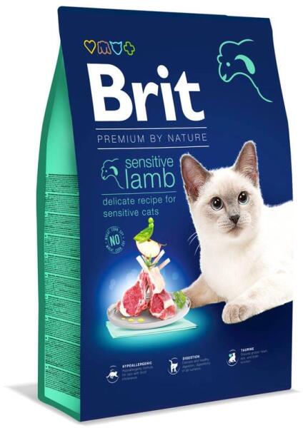 Brit Premium Cat Sensitive Lamb 8kg - Termékleírás Hipoaller gén formula bárányhússal érzékeny emésztőrendszerrel rendelkező felnőtt macskák számára. A Brit Premium By Nature macskaeledel természetes összetevőkkel és sok kiváló minőségű fehérjével készül. Formulája bárányhúsra és korpára épül, így nem irritálja az emésztőrendszert és csökkenti az allergia