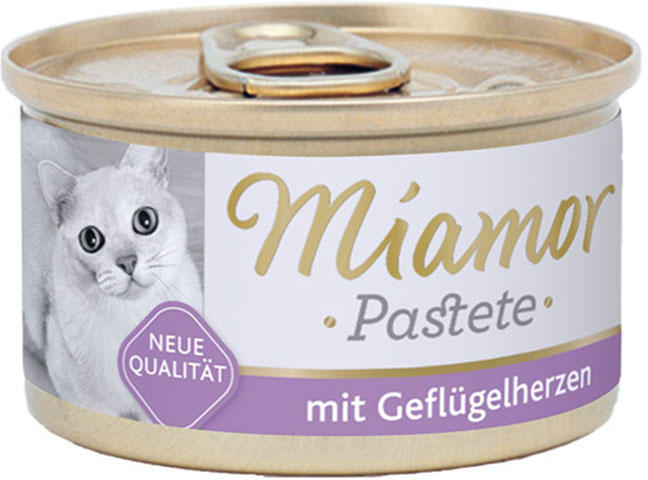 MIAMOR Katzenzarte Fleischpastete - szárnyaspástétom szívvel Kiváló pástétom macskák számára, kiegyensúlyozott magnézium szinttel(ez elengedhetetlen a húgyúti rendszer egészséges működéséhez). Nagy mennyiségben tartalmaz vitaminokat és ásványi anyagokat. Nem tartalmaz hozzáadott szóját és mesterséges szinezéket. Súly: 85g