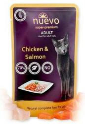 Nuevo cat pocket adult csirke és lazac 85g, A Nuevo cat adult csirke és lazac kapszulás teljes értékű eledel minden fajta felnőtt macskának, csirke- és lazachússal dúsítva. Ez az eledel büszke lehet minőségére, amelyet magas hústartalma és természetes összetevői képviselnek, miközben nem tartalmaz mesterséges adalékanyagokat, gabonaféléket és glutént. Összetevők: 42%