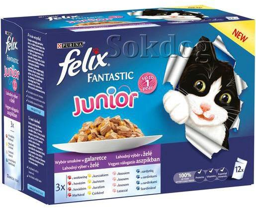 Nedves eledel kölyök macskáknak 1 éves korig, aszpikban, 4 ízkombinációban: csirke, marha, lazac, szardínia. 4*3db