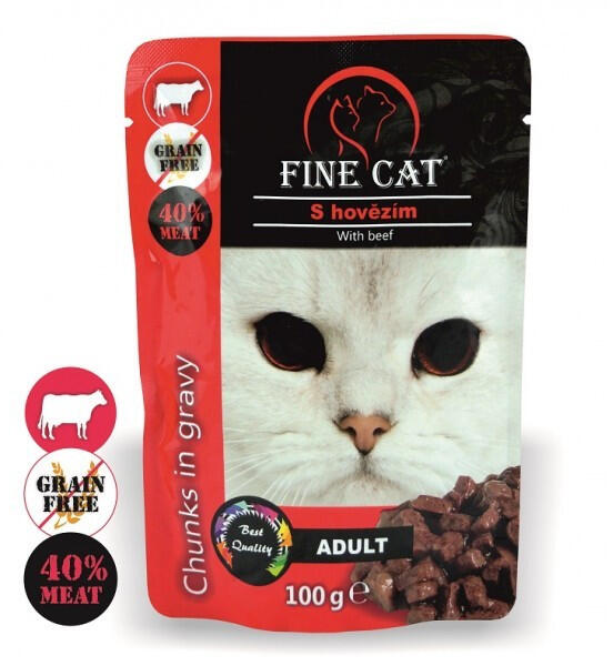 Teljes értékű eledel felnőtt macskáknak -marhahúsos falatok mártásban - GABONA NÉLKÜL. Összetevők: 40% hús és állati eredetű melléktermékek (ebből 4% marha), ásványi anyagok, növényi eredetű melléktermékek, különféle cukrok. Analitikai komponensek: Nyersfehérje: 8,00%, Nyerszsír 4,50%, Nyershamu 2,10%, Nyersrost 0,50%, Nedvesség 84,00%, Kalcium (Ca) 0,50%, Foszfor (