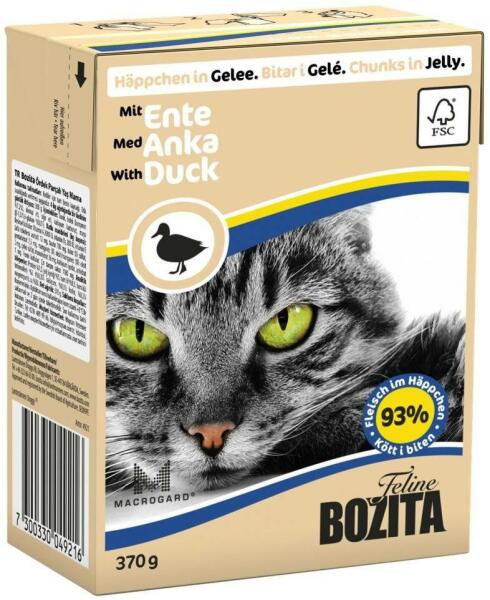 BOZITA macska kacsa zselé 370g - Leírás A BOZITA Cat Duck Jellied egy ízletes friss húsdarab zselében, kifejezetten macskák számára. A gyártáshoz felhasznált friss hús szigorú minőségellenőrzésnek van alávetve. Az élelmiszerben található természetes A-, B- és D-vitaminok, valamint a taurin garantálják a szervezet megfelelő és egészséges működését. Összetétel Csi