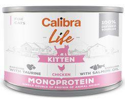 Calibra Cat Life Cons. Cica csirke 200g, Calibra Cat Life Kitten Chicken - csirkét és csirkeszívet tartalmazó konzervrecept cicák számára kifejlesztett, vemhes vagy szoptatós macskáknak is alkalmas. A teljes értékű nedves eledel egyetlen fehérjetípuson alapul, a receptúra korlátozott számú összetevőből áll. A konzerv összetétele gabonamentes és gluténmentes, ami befolyás