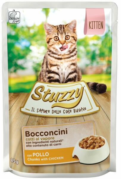 A Stuzzy Cat Chunks egy gőzöléssel készített teljes értékű eledel, ami még vonzóbbá teszi a cicák számára. Ízletes hús a vitaminokkal és ásványi anyagokkal teli lében Nem tartalmaz hozzáadott tartósítószert vagy színezéket összetevők: hús és hússzármazékok 45% (ebből 8% csirke), növényi melléktermékek (ebből 0,4% inulin), ásványi anyagok Analitikai összete