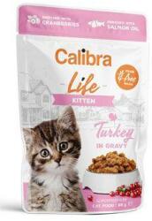 Calibra Cat Life Kitten pulyka mártásban 85g, A pulykahúsos zsebes recept cicáknak magas, 88%-os hústartalmat tartalmaz a mártásban lévő filékben. Nem tartalmaz gabonaféléket. A magas ízletesség és a kiváló emészthetőség a kizárólag minőségi összetevőkből álló összetételnek köszönhetően biztosított. A receptúrában meghatározott okos funkcionális adalékanyago