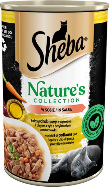A SHEBA® Nature's Collection baromfimáj és halolaj koktél sárgarépa körettel egy magával ragadó ízzel és illattal teli, bársonyos mártásban lévő, kitűnő étel, amely még a legigényesebb macskák ízlését is elkápráztatja. A Sheba Nature's Collection receptjének titka a gondosan válogatott, kiváló minőségű természetes összetevők, vitaminok és ásványi anyagok. A