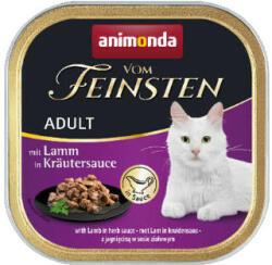 Animonda Vom Feinsten - nedvestáp (bárány, fűszeres szószban) macskák részére (100g) Vom Feinsten Adult a kiegyensúlyozott, ízletes, egészséges táplálkozást jelenti a legmagasabb szinten 1-6 éves felnőtt macskák számára. A zsenge darabok húsos hozzávalóinak minősége finom ínyenc szósszal párosulva garantálja az egyedi élvezetet. A finom, ínyenc ragu a felnőtt macsk