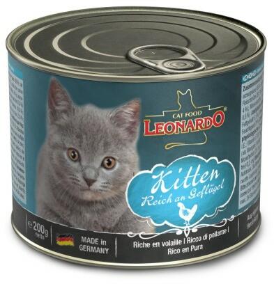 Jellemzők: - Mivel a házimacska vadon élő fajtársaihoz hasonlóan húsevő, a Leonardo konzerveledeleinek célja a színhús-minőség nyújtása. - Az élet tökéletes indításához. Porhanyós baromfival és egészséges adag lazacolajjal. - Nem tartalmaz színezéket, ízfokozót és tartósítószert sem. Összetétel: Hús és állati eredetű melléktermékek (65 %; ebből baromfihús