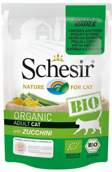 Schesir Cat BIO - csirke és sertés cukkinival finom és kiegyensúlyozott étrend felnőtt macskáknak tervezve. Kiváló emészthetőség Hozzáadott ételfesték vagy tartósítószerek nélkül A cukkini vitaminok és ásványi anyagok gazdag forrása A DE-OKO tanúsító szervezet által tanúsított különleges recept A Bolognai Egyetem Alma Mater Studiorum Állatorvosi Tudományok Kara j