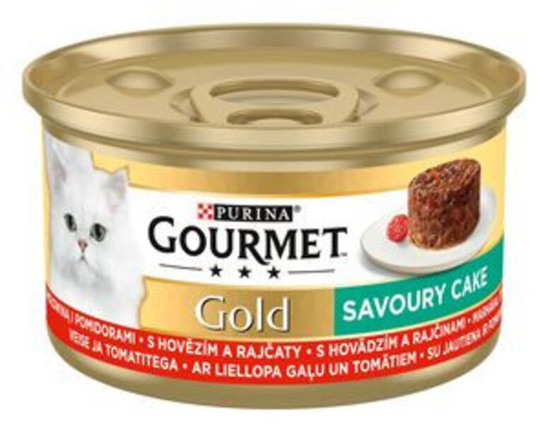 GOURMET GOLD Marhával és paradicsommal nedves macskaeledel 85gÖsszetételHús és állati származékok melyből marha 4 növényi fehérjekivonatok hal és halszármazékok zöldségek 12 szárított paradicsom mely 108 paradicsomnak felel meg növényi eredetű származékok ásványi anyagok különféle cukrokAnalitikai összetevőknedvességtartalom 740 fehérje 170 zsírtartalom 40 nyersh
