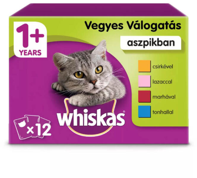 Whiskas alutasakos 12-pack, halas-húsos mix, válogatás, 12x85gMacskarajongókként tudjuk, hogy a dorombolás a legcsodásabb hang, amit csak hallhatunk. Ezért macskaséfjeink keményen dolgoznak azon, hogy olyan ízletes fogásokat készítsenek, amelyek miatt világszerte macskák milliói rohannak a tálkájukhoz izgatottan dorombolva, és elégedetten nyalogatva a bajszukat. Mindegyik fog