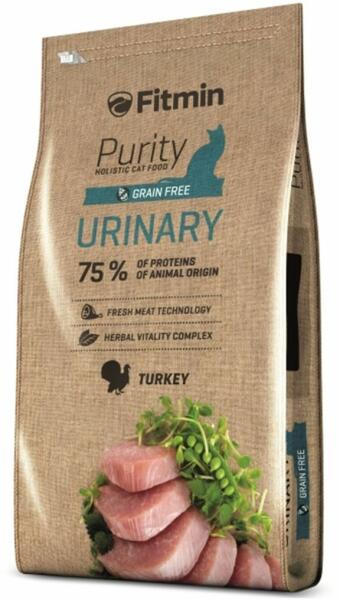 A Fitmin Purity teljes értékű, gabonamentes eledel macskák számára a húgyúti rendszer védelmére 75 % állati eredetű fehérjetartalommal. a friss csontozott hús garancia a jó ízre és különösen a szemcsék minőségére a pulykahús könnyű, ízletes és nagyon jól emészthető a csalán serkenti a vértisztítást és így a test teljes méregtelenítését, jótékony hatássa