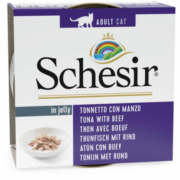 Schesir finom konzerv felnőtt macskák számára, tonhallal és marhával kocsonyában. a legjobb tonhaldarabok csont, belsőség és bőr nélkül. a konzerv nyílt tengeren fogott halat, nem pedig tenyésztett halat tartalmaz a könnyen emészthető csirke minimális zsír és koleszterin tartalommal a macska számára szükséges összes aminosavat és fehérjét tartalmazza a halnak köszönh
