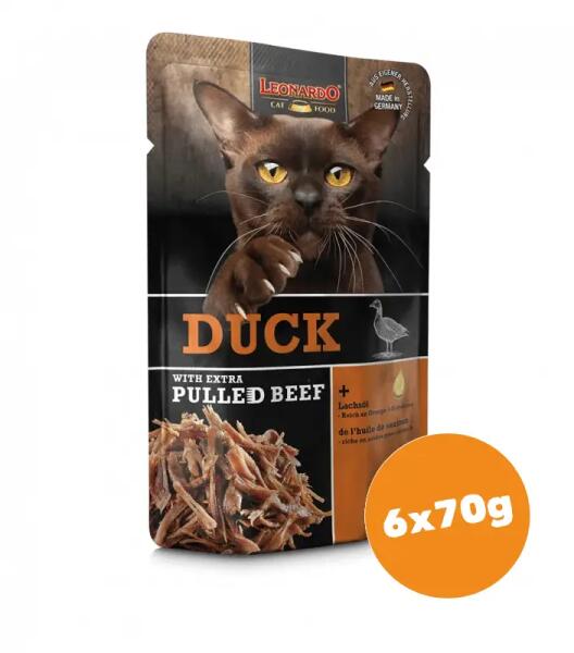 Leonardo alutasak kacsahús extra tépett marhahússal Valószínűleg emlékszel a különleges rágási élményre , ha kóstoltál valaha tépett marhát egy kerti sütés alkalmával vagy ettél egy marhaburgert egy étteremben. Az új LEONARDO® tépett marha kínálatunkkal ezt a rágási élményt kínáljuk a macskáknak. Minden receptúrát lazacolajjal finomítottunk és kíméletesen a