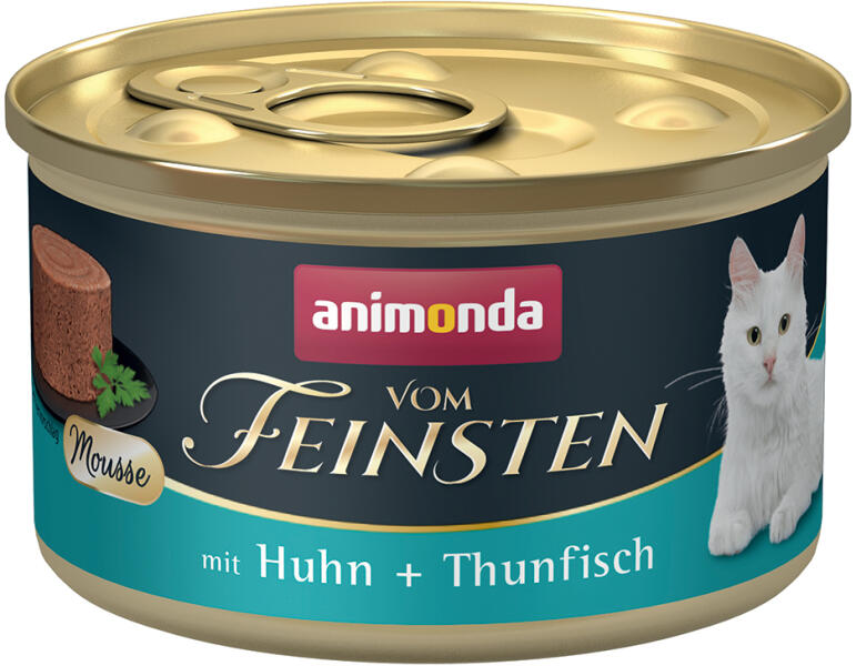 Animonda Vom Feinsten - nedvestáp (csirke, tonhal) macskák részére (85g)Mousse állagúA Vom Feinsten Adult a kiegyensúlyozott, ízletes, egészséges táplálkozást jelenti a legmagasabb szinten 1-6 éves felnőtt macskák számára. A finom mousse minőség egyedülálló élvezetet garantál. Ezek az ínyenc termékek a felnőtt macskákat minden alapvető tápanyaggal ellátják. Animond