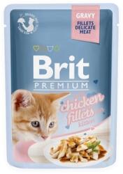 Brit Premium Cat Pouch csirkefilé kismacskáknak. Összetevők: 82% hús és állati származékok filé (8% csirke), növényi fehérjeextraktumok, növényi eredetű származékok (0,4% inulin), ásványok, különböző cukrok. Analitikai összetevők: nyersfehérje 9,5%, zsírtartalom 6,0%, nyers hamu 1,7%, nyersrost 0,3%, nedvességtartalom 82%, kaució 0,27%. Táplálékkiegészítők 1kg-b