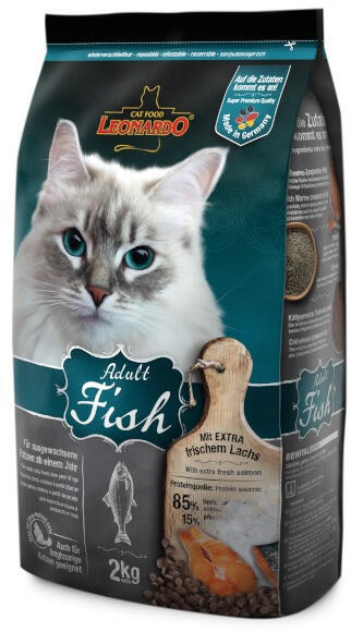 Adult- hal & rizs 2kg LEONARDO® Adult Fish, mely maga az egészséges tengeri sokféleség. A LEONARDO® Adult programjából a vitalizáló antarktiszi világítórákkal finomított ízletes krokettek igazi ínyencfalatok a halkedvelők számára. A tengeri halakból származó természetes Omega-3 zsírsavak biztosítják a selymes szőrzetet és az egészséges bőrt. Kifejlett macskákna