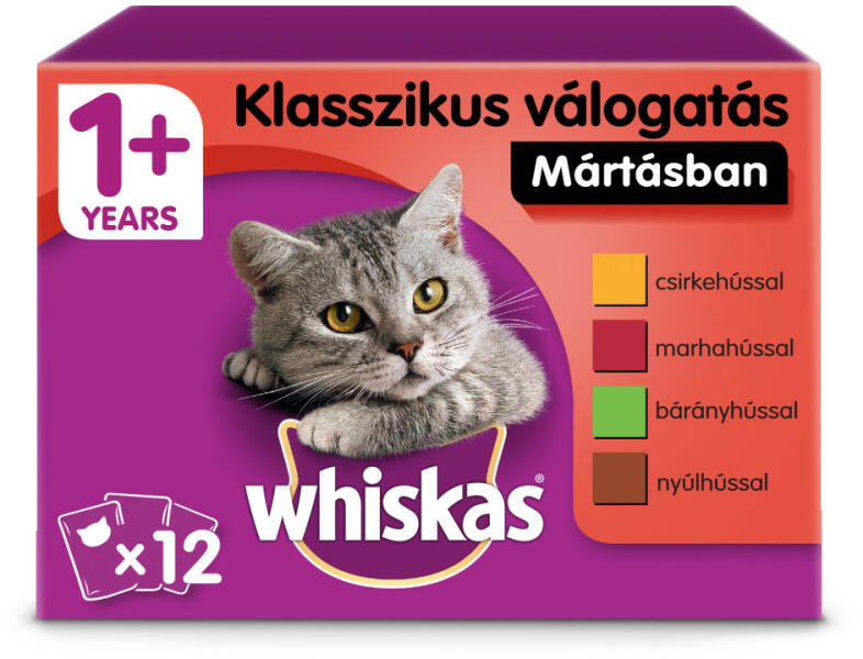 Whiskas klasszikus tasakos eledel válogatás felnőtt macskák számára, 12x85gMacskarajongókként tudjuk, hogy a dorombolás a legcsodásabb hang, amit csak hallhatunk. Ezért macskaséfjeink keményen dolgoznak azon, hogy olyan ízletes fogásokat készítsenek, amelyek miatt világszerte macskák milliói rohannak a tálkájukhoz izgatottan dorombolva, és elégedetten nyalogatva a bajszukat