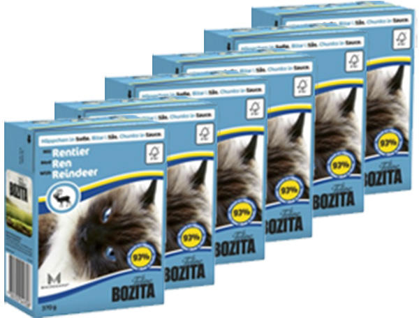 BOZITA Macska rénszarvas szószban 370g - Leírás A BOZITA TETRA RECART BONDS IN SAUCE - WITH RENEFER ízletes friss húsdarabok kifejezetten macskák számára készített mártásban. A gyártáshoz felhasznált friss hús szigorú minőségellenőrzésnek van alávetve. Az élelmiszerekben található természetes A-, B-, D-vitaminok és tautin biztosítják a szervezet helyes és egészsége