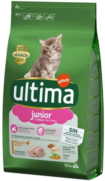 A zooplus. hu kínálatából: A speciálisan 1 évesnél fiatalabb macskák számára kifejlesztett Ultima Junior csirke szárazeledel kitűnő választás kiscicája növekedésének támogatására. Receptúrája tápanyagokban gazdag és teljes értékű, csirkéből származó, kiváló minőségű és könnyen emészthető fehérjékre, valamint rizsből származó szénhidrátokra alapoz. A