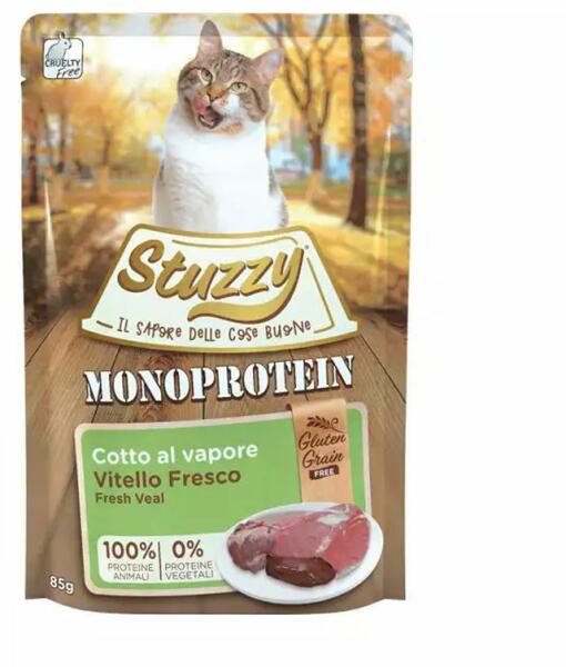 Stuzzy Cat Monoprotein finom tasak hússal tele egy állati fehérjeforrásból, gyógynövénymentes recept. A különleges monoprotein receptnek köszönhetően ideális bizonyos fajta fehérjékre túlérzékeny kutyák számára Gabonafélék, glutén, ételfesték és tartósítószerek nélkül A Bolognai Egyetem Alma Mater Studiorum Állatorvosi Tudományok Kara jóváhagyásával Összetev