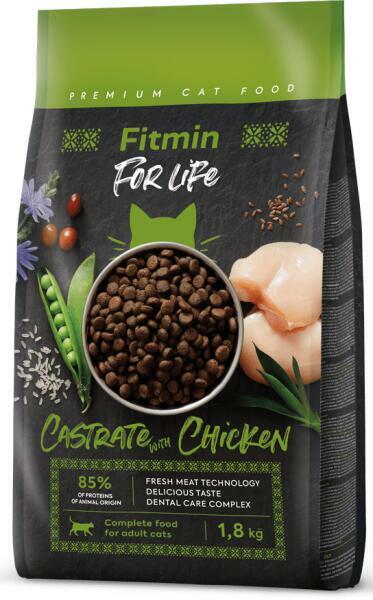 A Fitmin For Life teljes értékű eledel felnőtt macskák számára 86 % állati eredetű fehérjetartalommal. L-karnitinnel, ami serkenti a zsírégetést és segít a szívizom védelmében a rostok növelik a széklet térfogatát, segítik a bélfal megfelelő működését, valamint a mérgező anyagok testből való kiürítését fogápolás az egészséges fogakért és a szájüreg anti