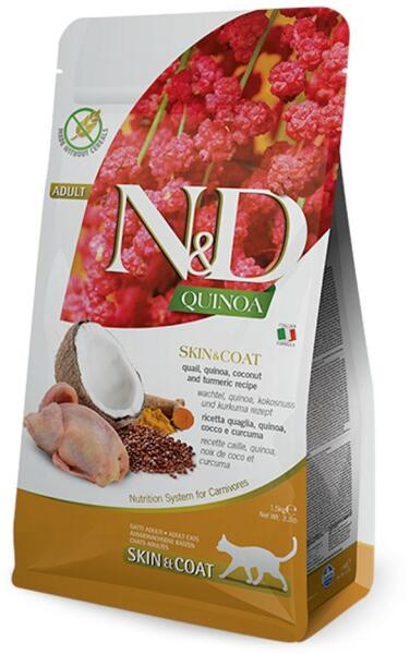 Gyártó: N&D Modell: Quinoa Skin & Coat quail 5 kg Leírás: Teljesértékű száraz eledel felnőtt macskák számára. Összetevők Fürj (20%), dehidratált fürjfehérje (20%), borsó keményítő, halolaj (heringből), quinoamag extrahált (8%), lenmag, szárított kókusz (2.5%), kurkuma (2.5%), inulin, frukto-oligoszacharidok, élesztő kivonat (manno-oligoszacharidok forrása), ú