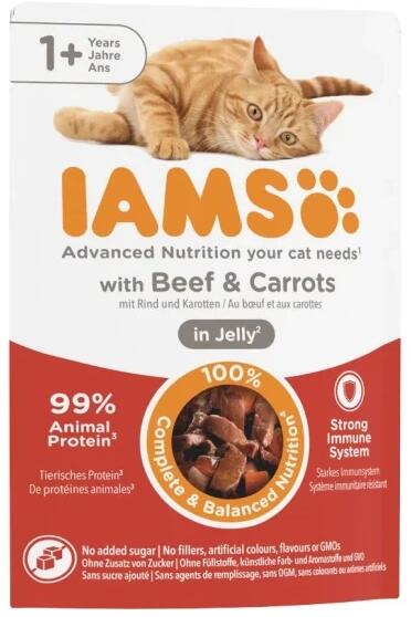 IAMS DELIGHTS ASZPIKOS MACSKAELEDEL MARHAHÚSSAL ÉS RÉPÁVAL Ajánlott: 1 évnél idősebb felnőtt macskáknak Az IAMS Delights 100%-ban teljes értékű és kiegyensúlyozott, prémium kategóriás állateledel felnőtt macskák számára. Teljes körű táplálás és ellenállhatatlan íz. sszetétel: Hús és állati származékok, hal és halszármazékok (8% marhahús), zöldségek (4% r